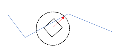 The robot continues to follow this intersection at real-time. This is how the robot "follows" the designated path. It is essentially a p controller for the heading that has the robot move at the fastest possible speed around some path.
